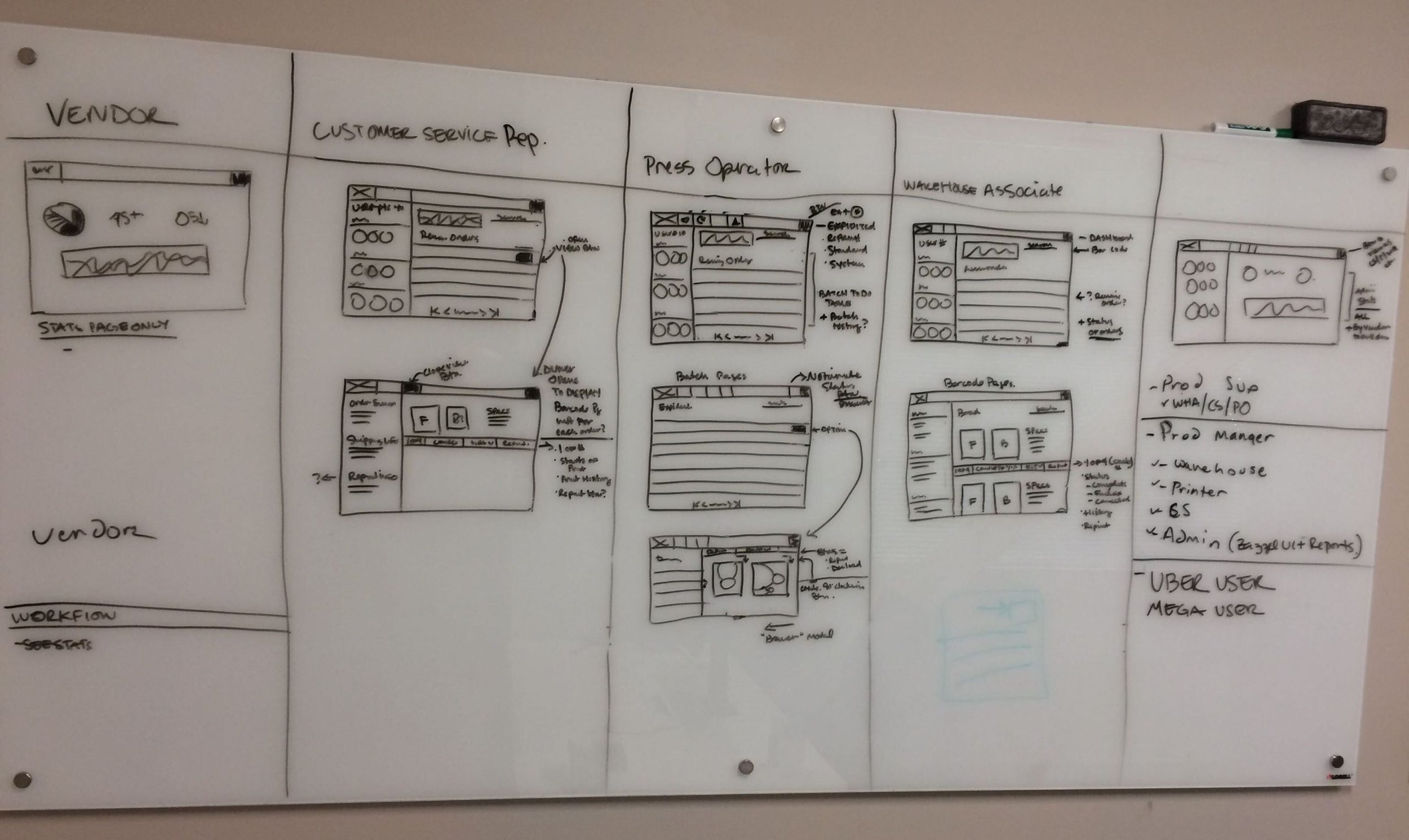 whiteboard of initial design