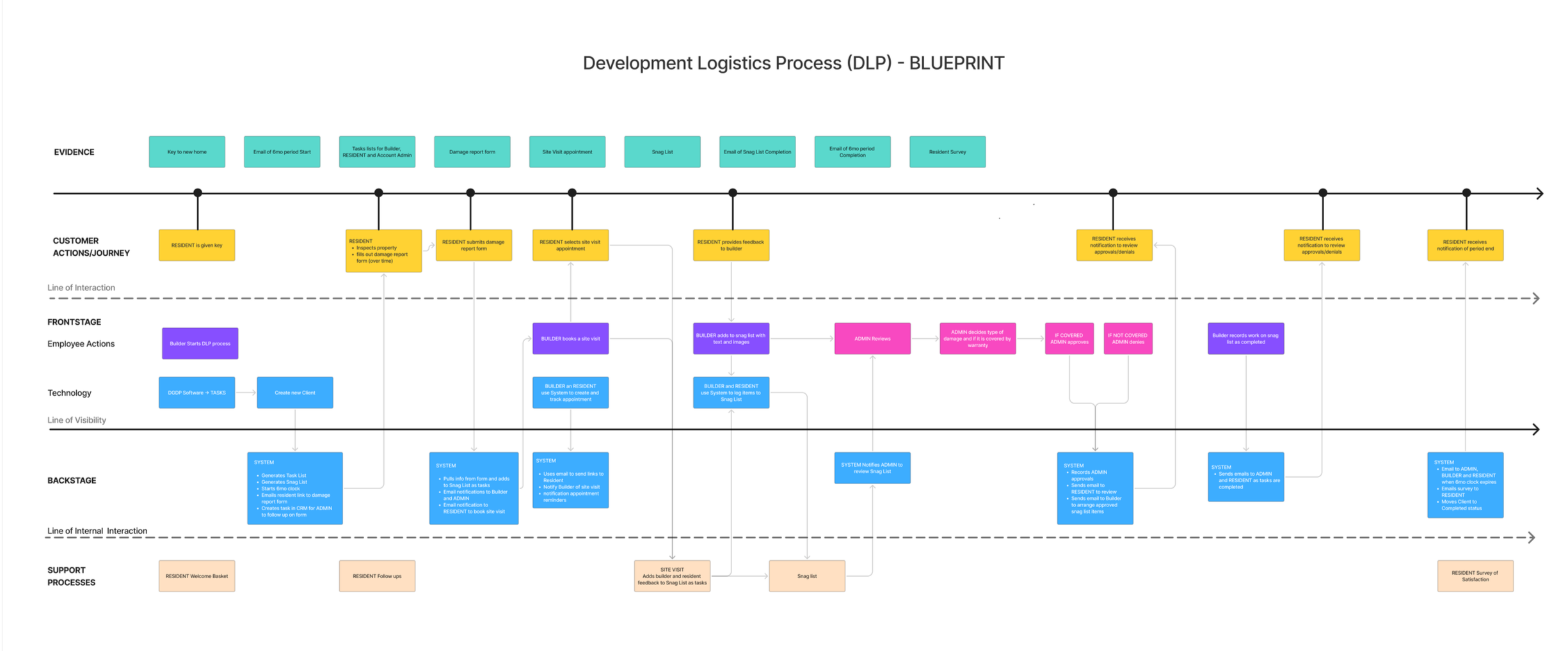 One example is the “Snag List,” a service blueprint I created at Double GDP. It guides residents through the six-month new home warranty period.