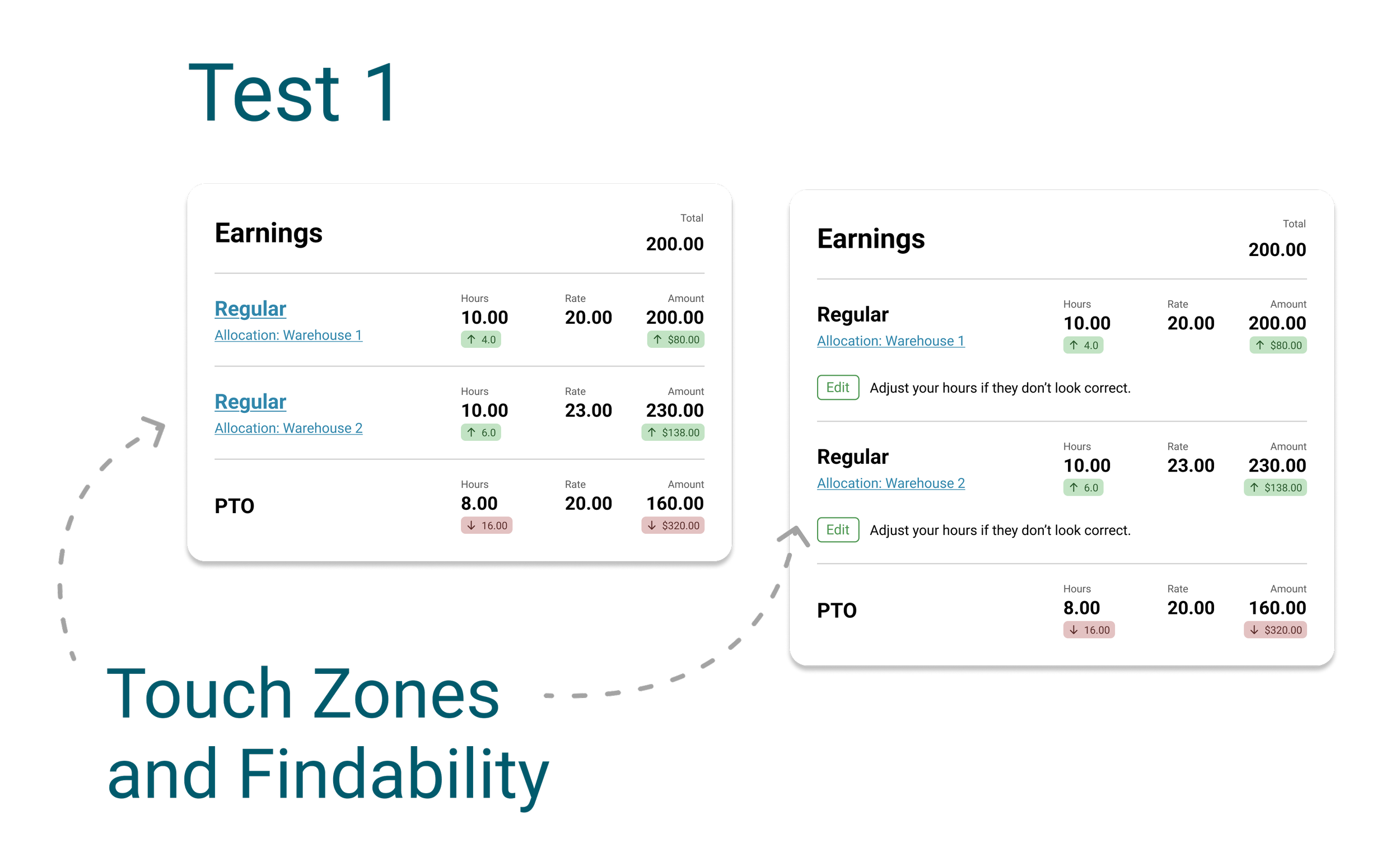 Test Goal - validate the touch zones and see how easily the users could the users find the links and buttons (findability).
