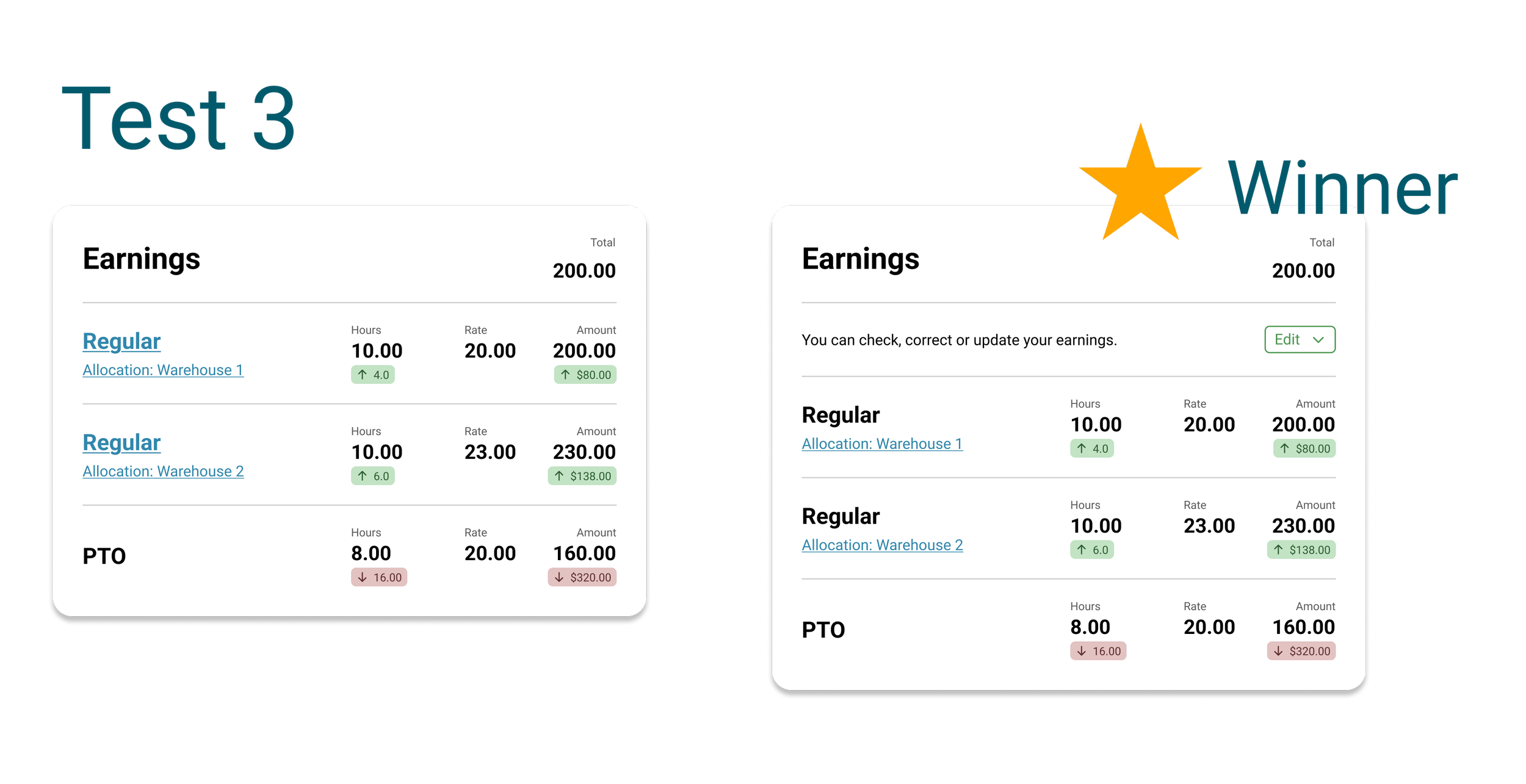 Due to the timeline I only had 3 days to test, iterate and get the PM on board. I created a simple Figma click thru prototype for the 2 options: A. Link with regular navigation to return and B. button with modal to return. I loaded these on my iPad. Our hourly employees used this page so I only had wander the halls a bit to find 5 real users.